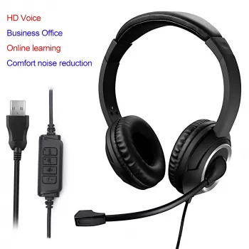 USB Wired Headset with Noise Cancelling Microphone for PC, Laptop & Call Center